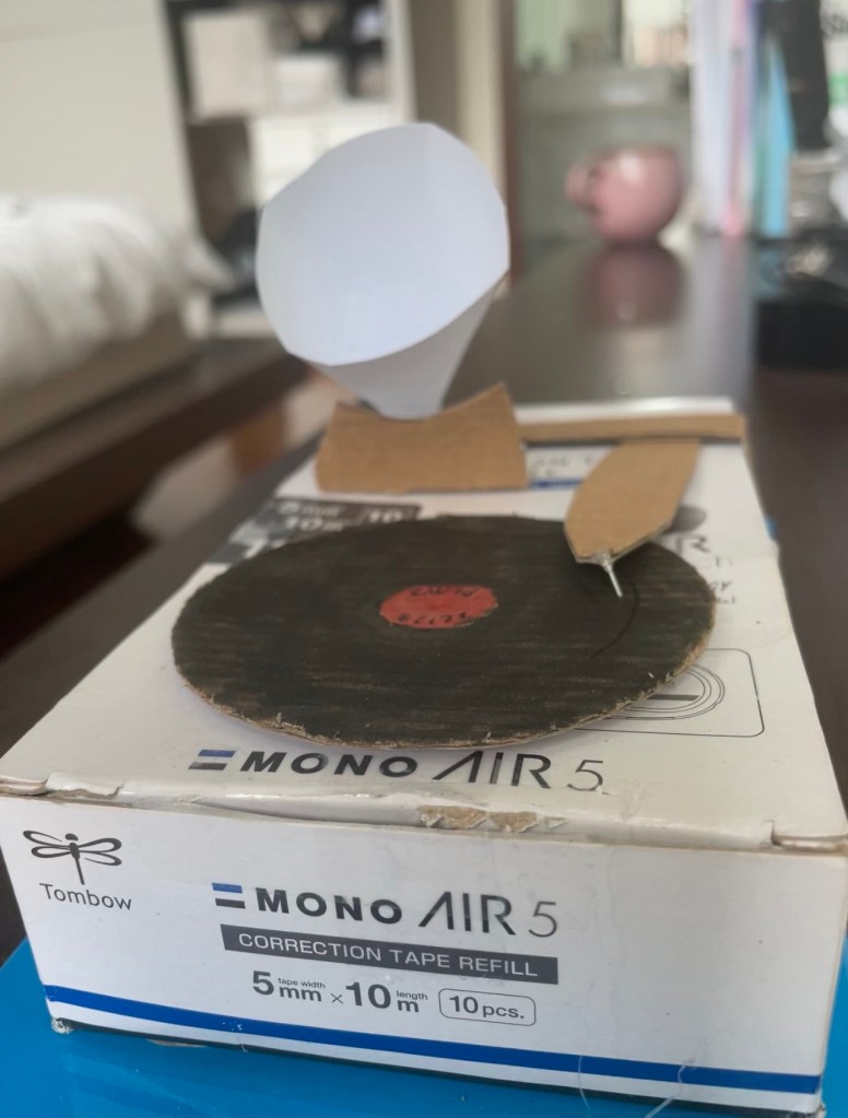 Right: 3D Holographic projector made from old pieces of plastic and cardboard