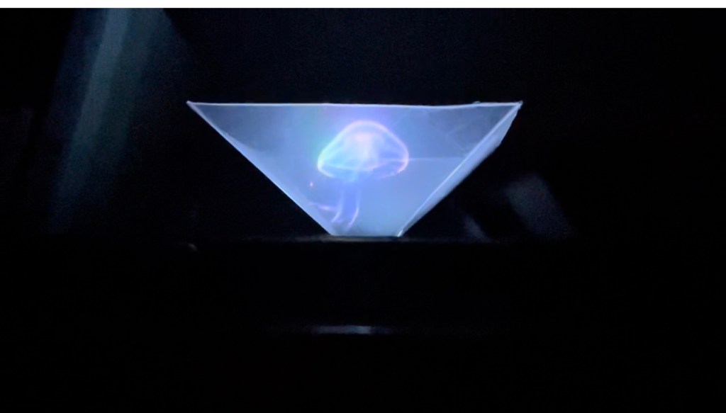 Center: Holographic Projector made from an old piece of plastic