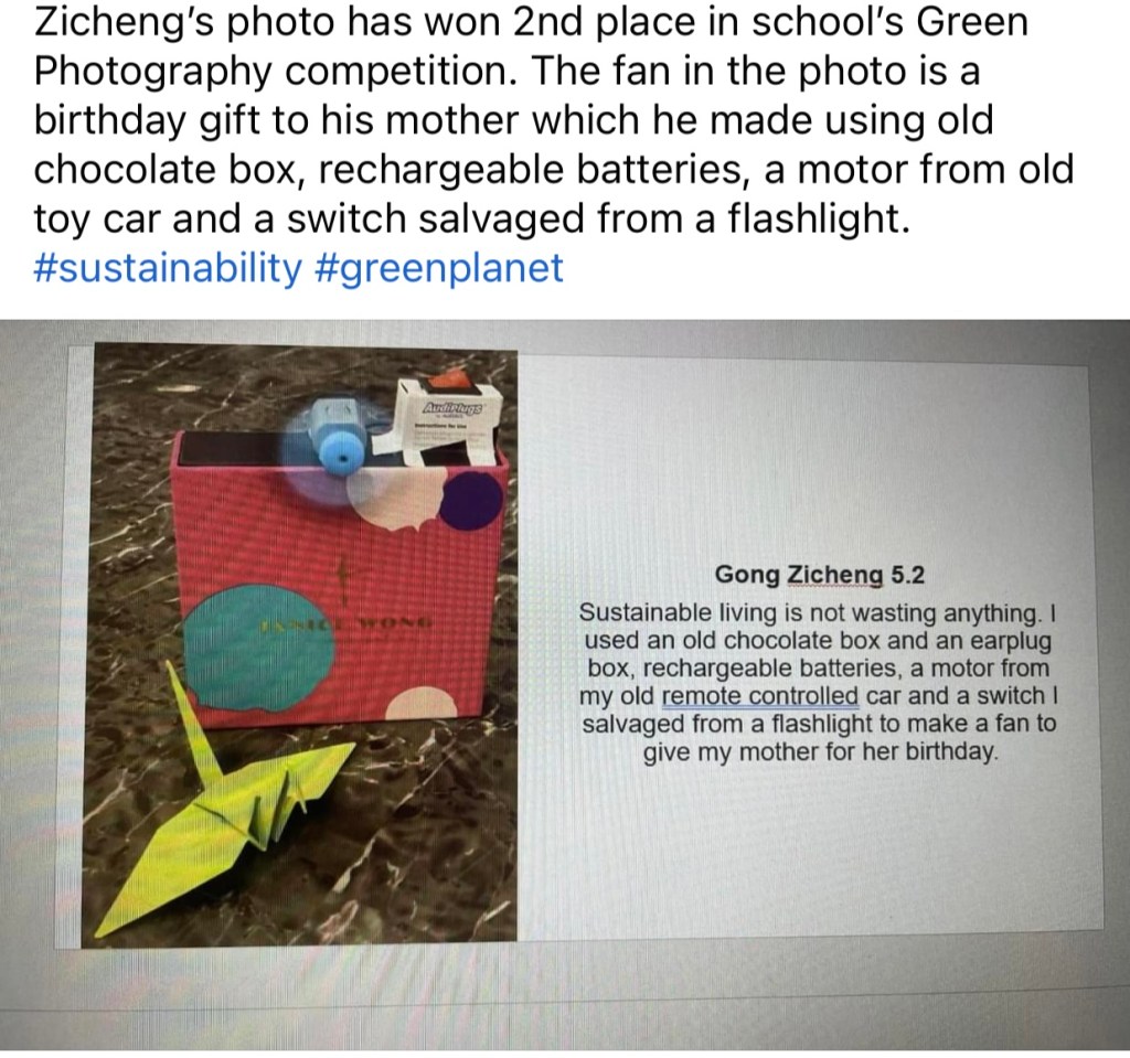 - Green Photography Competition (2nd Place), Anglo Chinese School (Junior)